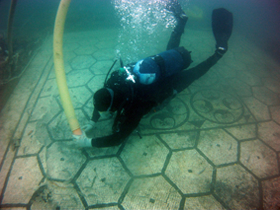Previous Next Indagini Archeologiche e completamento del restauro del mosaico policromo con ottagoni e motivi floreali - Parco Archeologico di Baia Sommersa